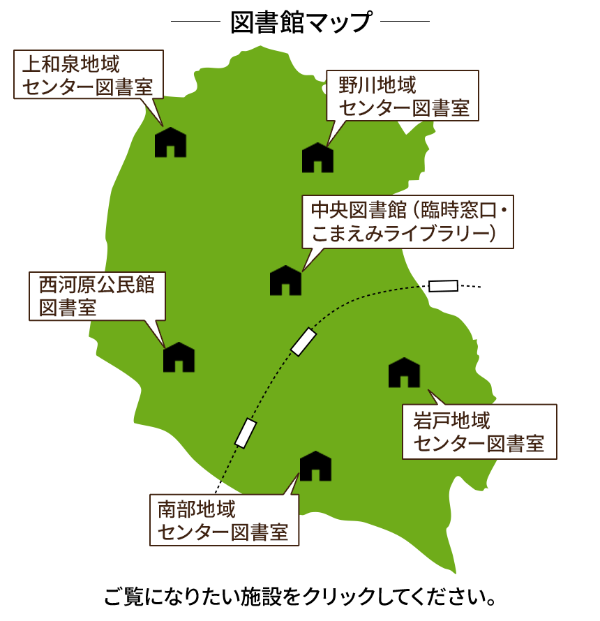 | 電話 | 中央図書館 03-3488-4414 こまえみライブラリー 03-6698-0024 |